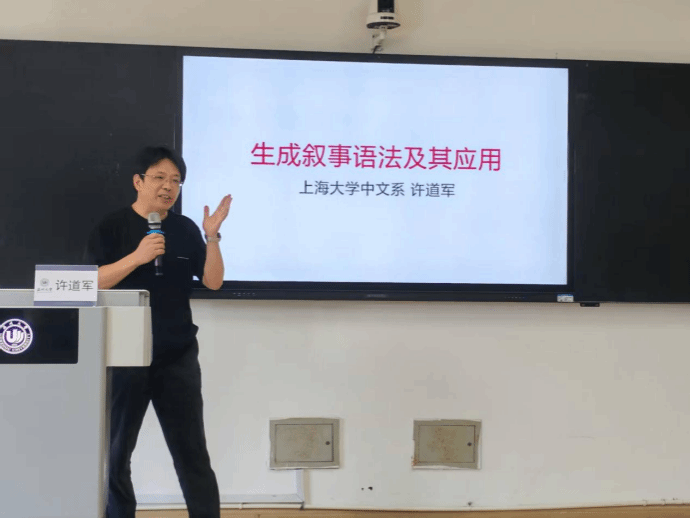 许道军教授以“生成叙事语法及应用”为主题,从叙事学角度切入,系统介绍了生成叙事语法及其应用。他以《复活》《双城记》《红楼梦》《西游记》《肖申克的救赎》等听众们耳熟能详的经典作品为例,阐释了生成叙事语法中人物/主角的变量、叙事目标与人物目标的动态平衡机制等,强调作家是通过“外部管理”操控情节发展,实现叙事合理性与创新。