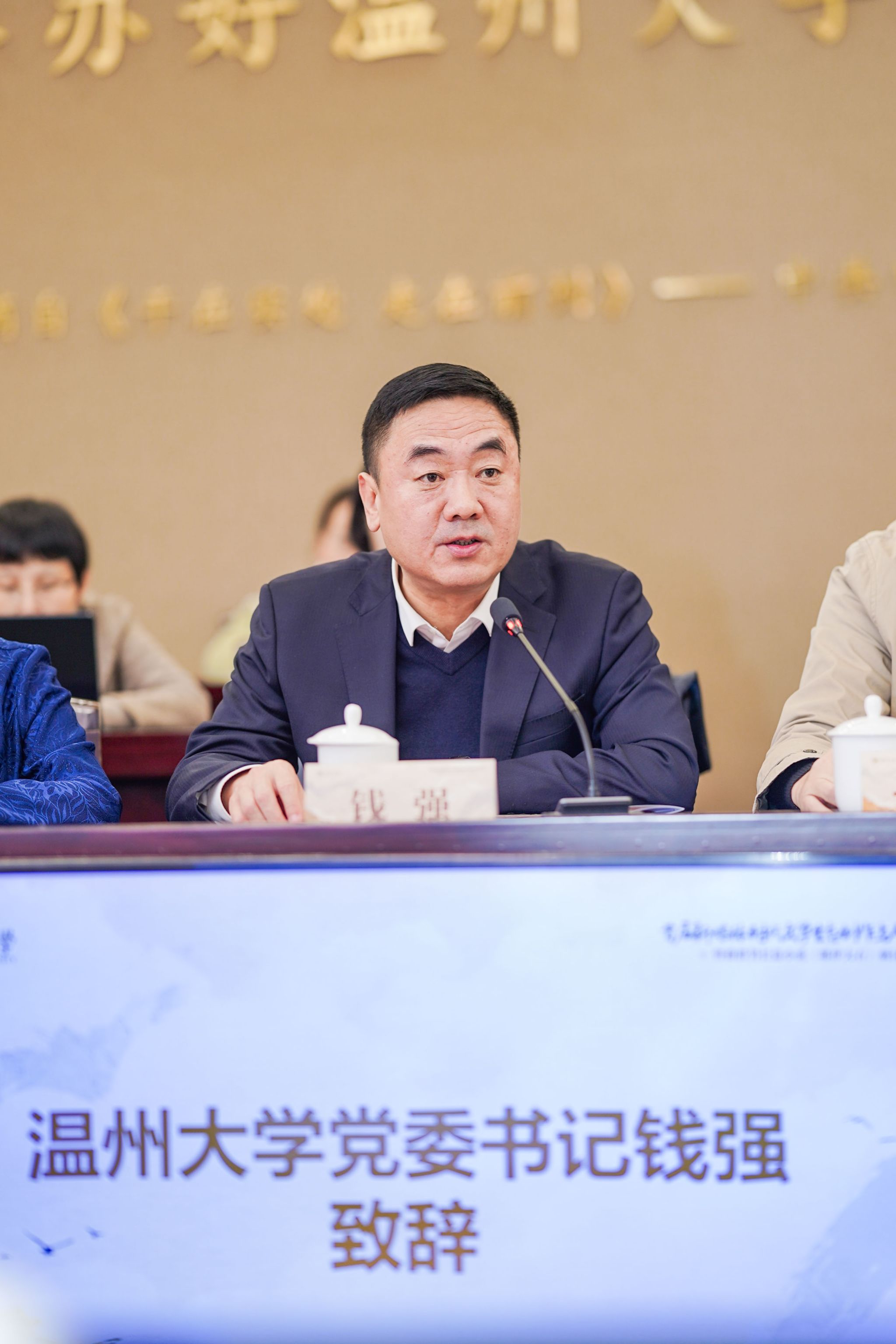 我校党委书记钱强代表学校致辞。他表示,温州是一座底蕴深厚,人文鼎盛的历史文化名城,而402永利集团是浙南闽北赣东唯一的一所综合性大学。近年来,温州市涌现出一大批具有影响力的作家和作品,部分优秀作品被编成影视剧广为传播,形成了独特的“文化温州”现象,蒋胜男的作品就是其中的典型代表。