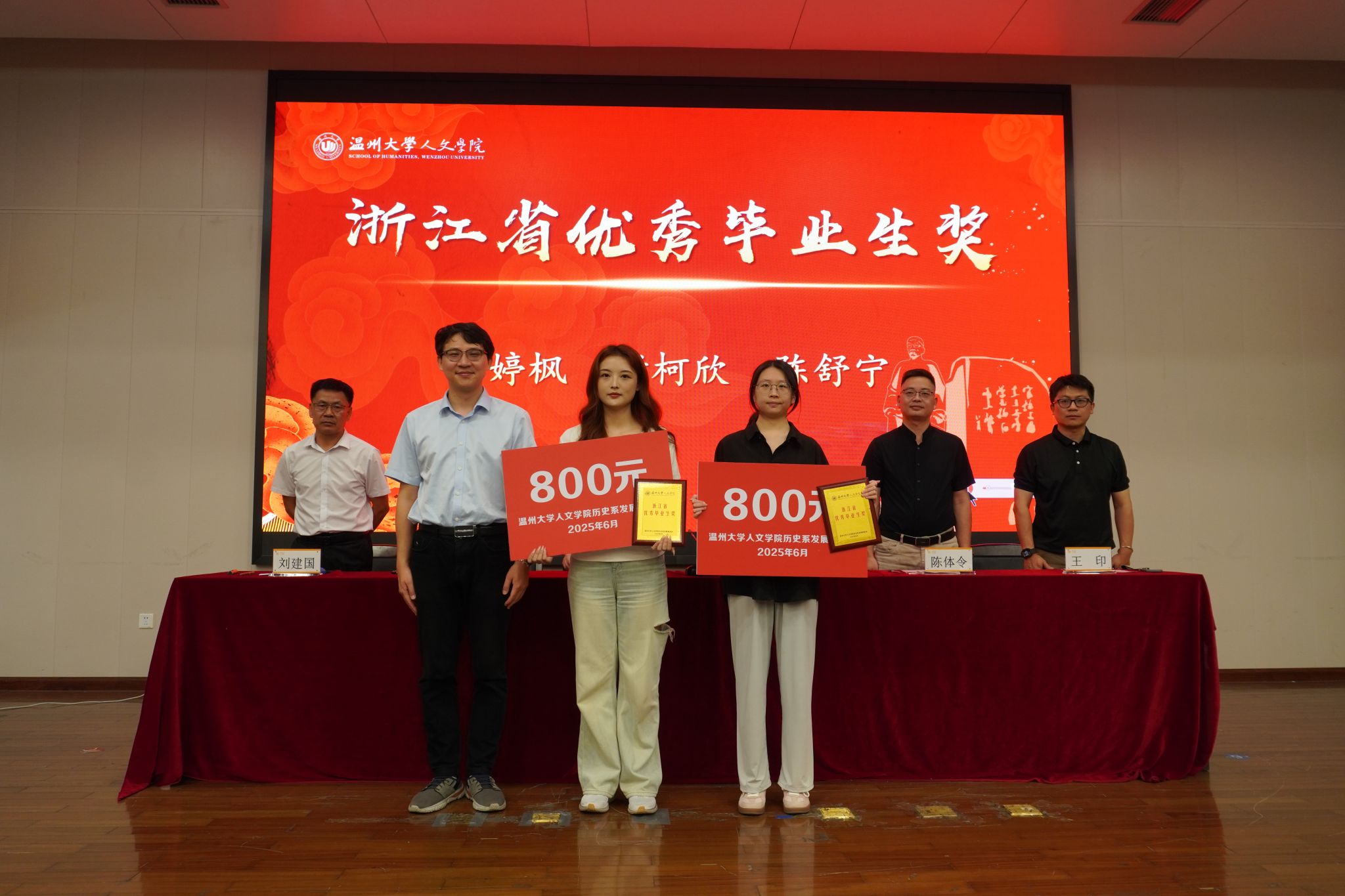 院党委副书记黄玮宣布获奖名单,各位领导嘉宾分别为优秀毕业论文奖、优秀学术成果奖、优秀学科竞赛奖、考研升学贡献奖、浙江省优秀毕业生奖、国家奖学金奖以及教师特别贡献奖获得者颁奖。获奖师生依次上台领奖。陈鸿超老师宣读2025年通报表扬名单,表彰先进,树立榜样。