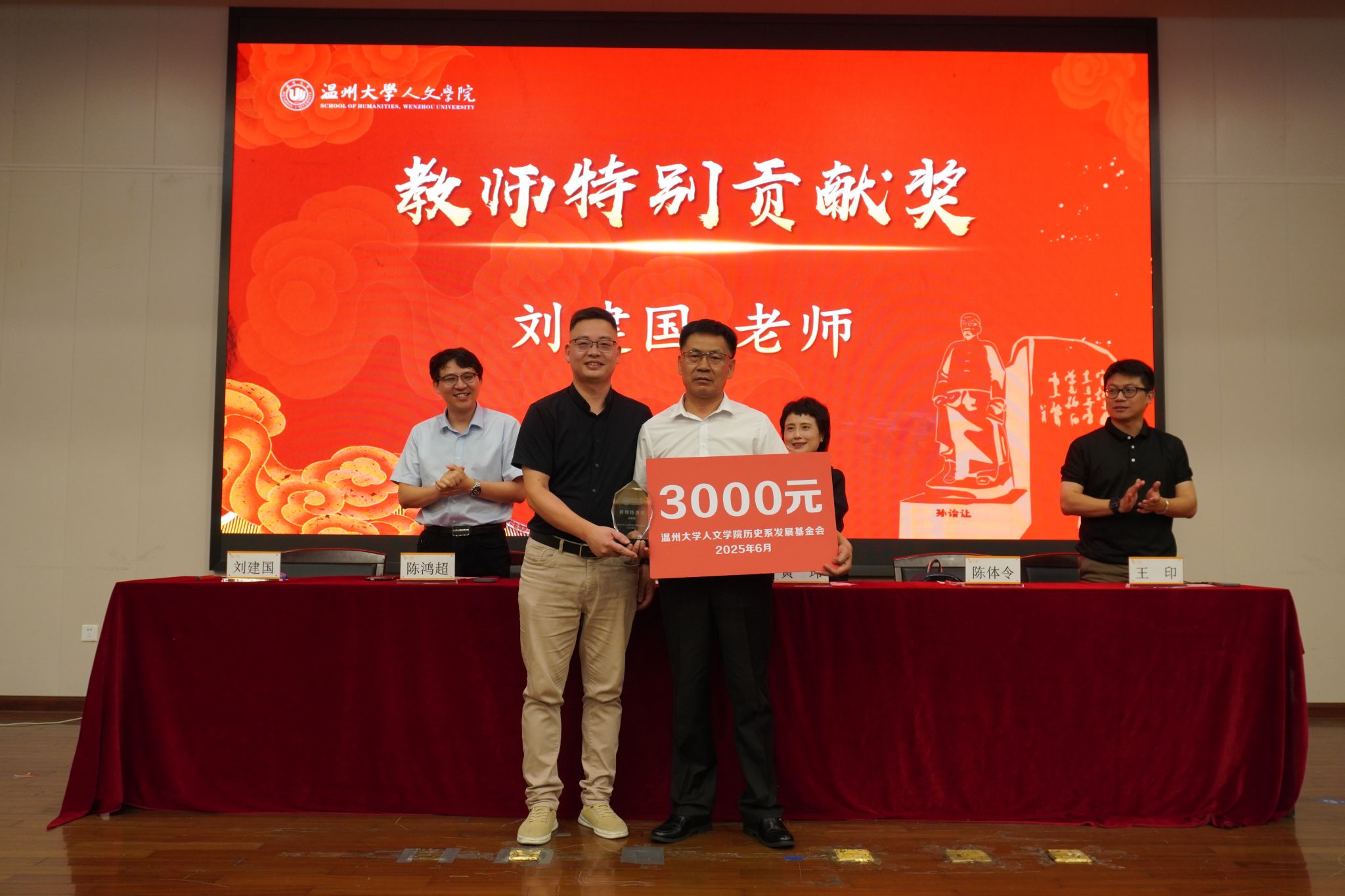 荣获教师特别贡献奖的刘建国老师发表获奖感言并向毕业生们给予临别赠言,希望大家保持 “重情大气” 的品格,营造和谐奋进的系风。