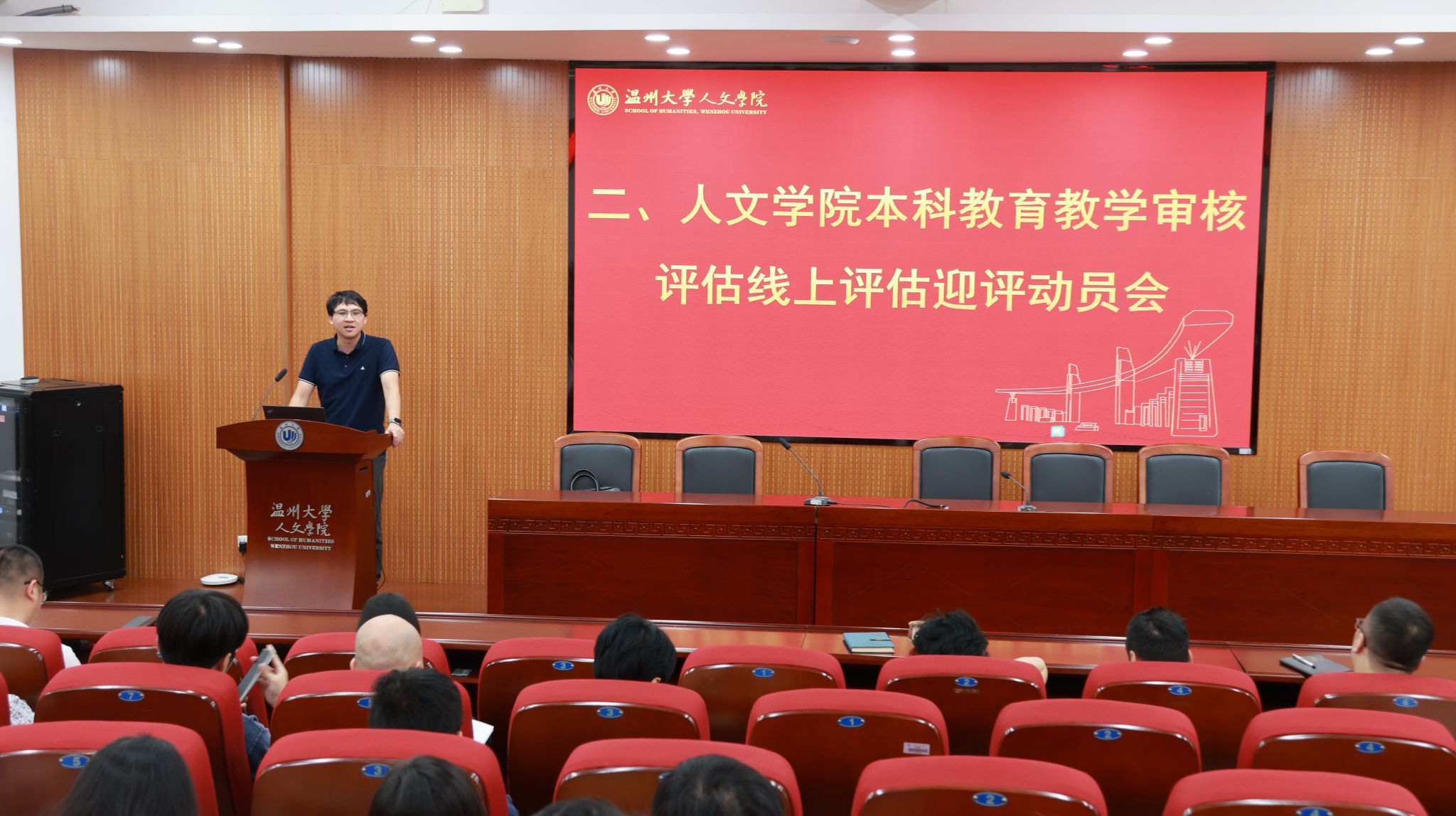 随后,会议进入本科教育教学审核评估迎评动员环节。陈鸿超副院长强调,本科教育教学审核评估是学院当前重点工作,希望全体教职工认真准备教学材料,规范课堂行为,以最佳状态迎接评估,切实做到“以评促建,以评促改,以评促管,以评促强”。