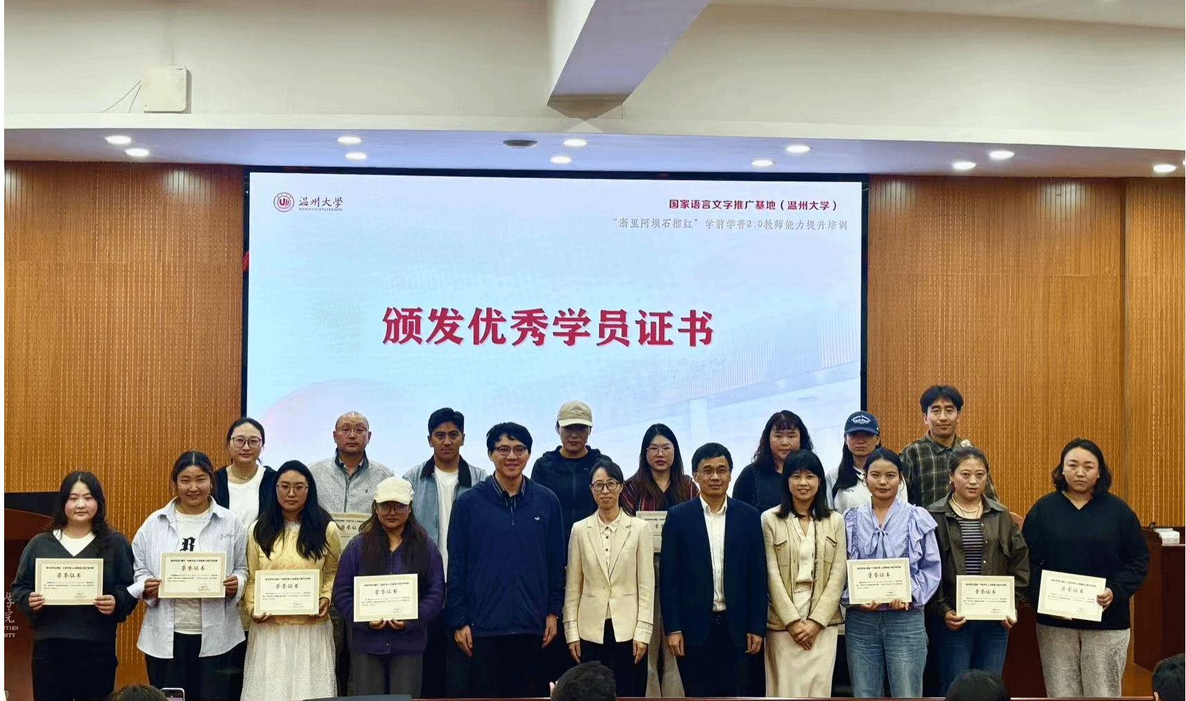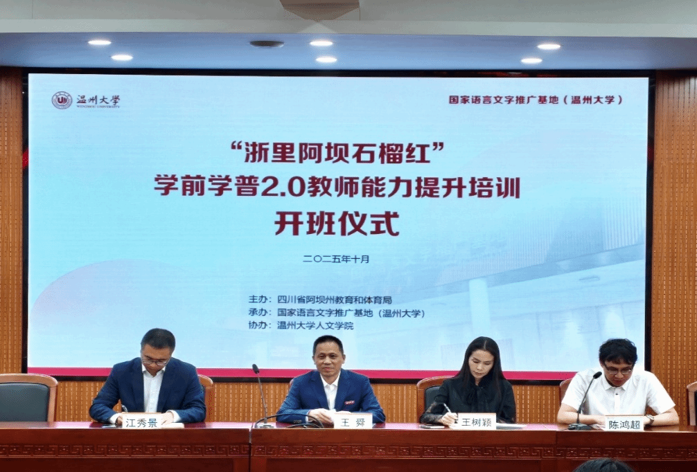 2025年10月21日至28日,由四川省阿坝州教育和体育局主办、国家语言文字推广基地(402永利集团)承办、402cc永利协办的“浙里阿坝石榴红”学前学普2.0教师能力提升培训项目在402永利集团成功举行,来自四川省阿坝州8个县(市)的100名藏、汉、羌、彝和土家族老师参加学习。