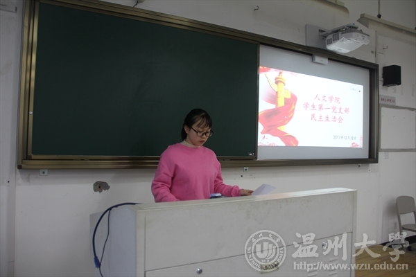 2017年12月13日下午我院学生第一党支部本学期第三次民主生活会在人文楼303教室召开,会议由学生第一党支部书记李林军主持。