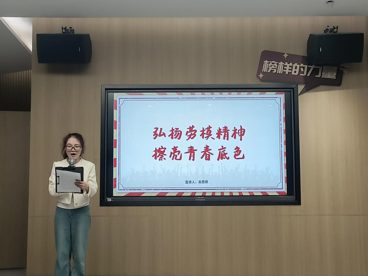 “青年宣讲人”吴思琪同志带来了题为《弘扬劳模精神,擦亮青春底色》的宣讲,深情展示了三位劳动模范在不同时代背景下的劳动故事,揭示了他们所构筑的劳模精神、劳动精神和工匠精神。一代人有一代人的长征,一代人有一代人的担当。吴思琪同志还呼吁在场同学在劳模工匠精神的感召下,砥砺初心使命,练就过硬本领,以实际行动书写新时代的劳动者之歌。