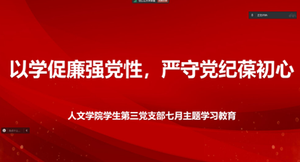 为全面加强党的纪律建设,确保全党目标一致、团结一致、步调一致,深入学习贯彻习近平总书记关于全面加强党的纪律建设的重要论述,我院学生第三党支部于7月15日晚上19:00在线上召开了“以学促廉强党性,严守党纪葆初心”主题学习会暨七月主题党日活动。