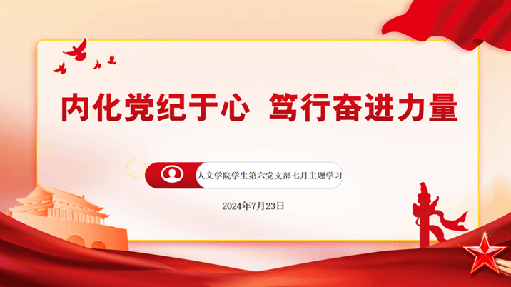 为深入党纪学习教育,贯彻警示教育思想,推动全面从严治党向纵深发展,2024年7月23日,402cc永利学生第六党支部在线上积极展开“内化党纪于心,笃行奋进力量”主题学习会暨党日活动。本次活动由肖佳琦同志主持。