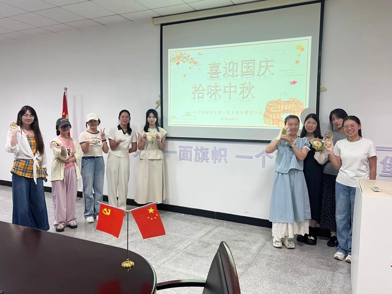 10月1日下午,大学生活动中心A座党员之家香气弥漫,402cc永利学生第一党支部“喜迎国庆,拾味中秋”主题党日活动在此举行。与往年不同,今天的主角是本次国庆中秋假期10月1日当天选择留校的党员同志们。