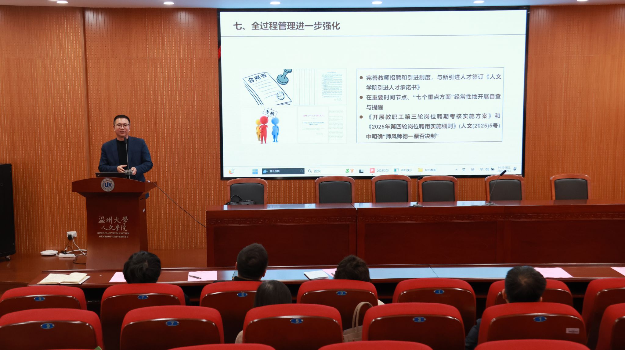 2025年12月3日,402cc永利在203会议室召开教职工大会暨师德师风专题学习会。会议由江秀景主持,学院全体教职工共同参加。