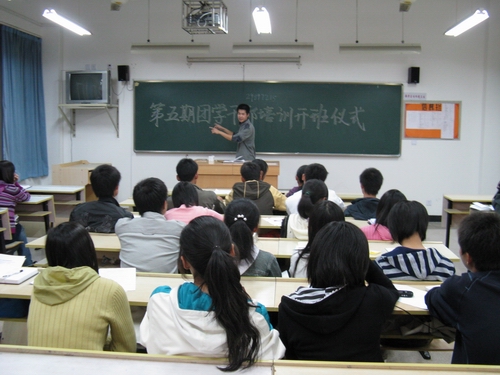为了适应新形势下高校团学工作的需要,提高团学干部的政治思想素质、业务能力,培养团学干部的创新能力、服务意识,通过团学干部带动全校同学的积极性和热情,促进大学生素质拓展计划的实施,为在校生的成长成才创造良好的条件和平台。402cc永利第五期团学干部培训班于11月8日晚正式开班。402cc永利辅导员屠建斌、学生会主席卢浩亮及07及全体团委学生会心成员共同参加了此次会议。