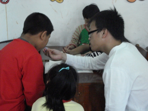 新马道学校是一所残疾儿童学校,因此本次支教活主要是教他们一些基本的词语。志愿者们选择了一年级的四位学生,对他们进行二对一的教育。两位志愿者一起坐在一位学生的身旁,先领读几个词语,再让他们跟读。虽然这些残疾儿童发音不准,但他们还是尽力地跟着念,志愿者们也一遍又一遍不厌其烦地教。小小的教室里不时地发出阵阵掌声,看到孩子们卖力地学,志愿者们不禁为他们送上掌声,孩子们的笑脸也不断呈现。 将近一个小时的助教活动,在志愿者和孩子们的欢声笑语中结束。同时特让志愿者们体会到了作为一名人民教师的不易,更是作为残疾儿童的老师的艰辛。但孩子们的笑脸让志愿者们觉得这是一件值得付出爱心去做的事。新马道学校作为402cc永利青协的服务基地,经常能得到志愿者的关怀。希望通过志愿者们的努力能让这些智障儿童感受到更多的温暖与关爱!