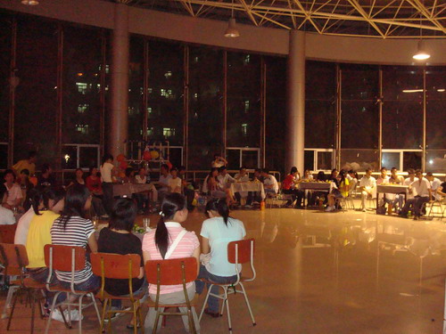 在老师们发表了简短的讲话之后,晚会在一曲《绿光》中拉开了帷幕。随后,05、07历本同学表演了精彩纷呈的表演,如清越的男女生独唱、深情款款的吉他弹唱、奇幻的纸牌魔术、热情的恰恰舞、动听的越剧等节目。整场晚会豪放欢快,玻璃厅内弥漫着当代大学生那朝气热烈的蓬勃生气。
