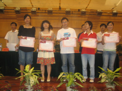 毕业典礼上,周剑平书记宣读了402cc永利07届省优秀毕业生以及优秀毕业论文的获奖名单,领导们为他们颁发了证书。另外,本届考研也取得了十分优异的成绩,领导们也为其颁发了奖金。特别值得骄傲的还有我院07届毕业生在激烈的竞争中获得了到西部服务的机会,陈艾华书记及叶世祥院长为她们佩带红绸带,并献上了学院的祝福。
