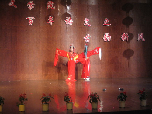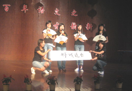 比赛高潮一个接一个,原创情景剧《钗头凤》让我们身临其境地感受别离的无奈,“焦仲卿”与“刘兰芝”把越剧中的惜别情表现得真实感人,手拂琵琶听《春雨》,最后的舞蹈《孔雀东南飞》与书画《墨香》更把比赛推向了最高潮。值得一提的是从平阳校区赶来参加我们比赛的同学,一曲《水调歌头》,所包含的已不仅仅是思念这么多。
