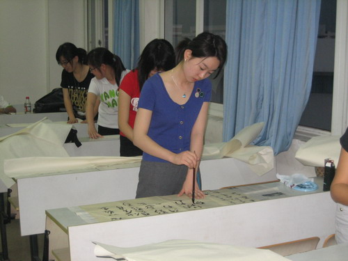 5月11日下午6:30,402cc永利“百年语文”系列活动之书画大赛决赛在北校区1-307拉开帷幕。16名比赛选手是由专业老师从初赛的众多参赛者中评选出来的。