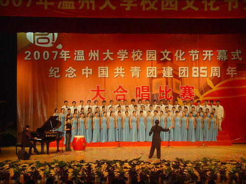 4月26日晚,402永利集团为纪念中国共青团建团85周年,402永利集团大学生活活动中心演艺厅举办了一场大型合唱比赛,歌唱祖国,歌唱青春。