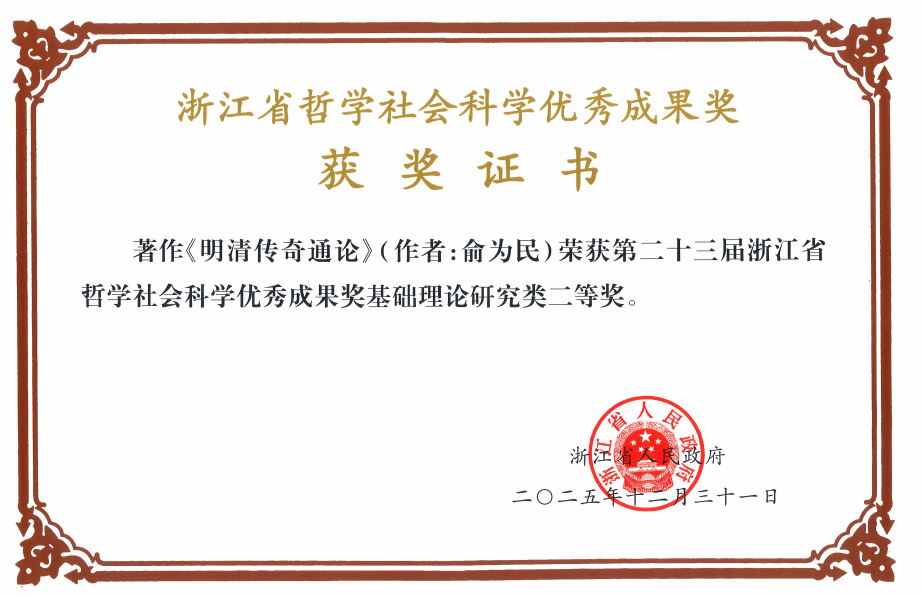 奖励名称:浙江省第二十三届哲学社会科学优秀成果奖