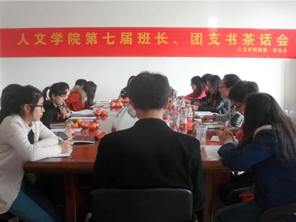 2013年3月12日15时30分,402cc永利第七期班长、团支书茶话会在人文楼213会议室举行。我院党总支书记吴静、教学科副科长伍海燕、学生科科长曾蓓蕾出席了本次茶话会,各年级的班长、团支书以及团委学生会主要负责人参加了茶话会。茶话会由曾蓓蕾老师主持。茶话会开始,曾蓓蕾老师作了简短的发言,希望各班级的班委能围绕学院同学们的学业问题、就业问题、科技创新方面的问题进行发言提问,为学院在这些方面更好的发展建设提出更好的建议。在提问环节,各班委就班级同学们提出的众多问题一一向出席的领导、老师以及学生干部提问。大三同学关注毕业实习、考研自习室安排等,大二同学则偏重于教学安排、实习实践等问题,大一同学就学区制改革后,学院与学区的分工职责向学院做进一步了解。同学们还就普遍关心的学院教学设施、电子设备出现的问题提出了修缮建议。到场的伍海燕老师、曾蓓蕾老师分别就同学的问题做了解答。茶话会上,各年级的学生干部还就考研自习室、推行特色早晚自习制度、教育实习时间等问题进行了热烈的讨论。最后,吴静书记为本次茶话会做了简短的总结。她希望在学区制改革的前提下,学院会在学业、就业、创业、科研等方面尽最大努力满足同学们的需要,希望通过本次互动,及时收集问题、反馈问题、研究问题。她肯定了班委工作的重要性,特别是在促进学生和学院交流的必要性。
