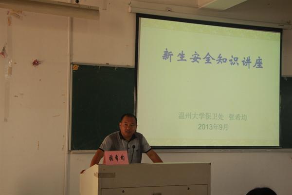 “防火,防盗,防师兄”,安全教育讲座在张处长不无幽默的开篇语中开始了。此次讲座旨在增强新生们的安全意识,普及安全知识,并传授基本的安全技能。首先,张处长特别强调了安全意识的重要性。他指出:“大学不是一座象牙塔,而是一个万事皆有可能的小型社会,我们应该从‘财物安全’、‘人身安全’、‘消防安全’‘交通安全’、‘心理安全’等多个方面注重自身安全,做到对自己负责,让家人放心,让学校安心,而不应该意气用事、麻痹大意,犯下危害他人又自毁前途的错误。”同时,张处长结合了许多亲身经历,向同学们生动地介绍了校园中存在的安全隐患,大大加深了同学们的体会。之后,张处长不忘教导同学们积极乐观地处理好人际关系,从而保持身心健康;做到关心他人,学会忍让,用心体会集体的温暖。最后,张处长总结道:“安全意识应先于安全技能。要想在大学中健康快乐地学习生活,必须在保证自身安全的同时不侵害他人的合法权益。”
