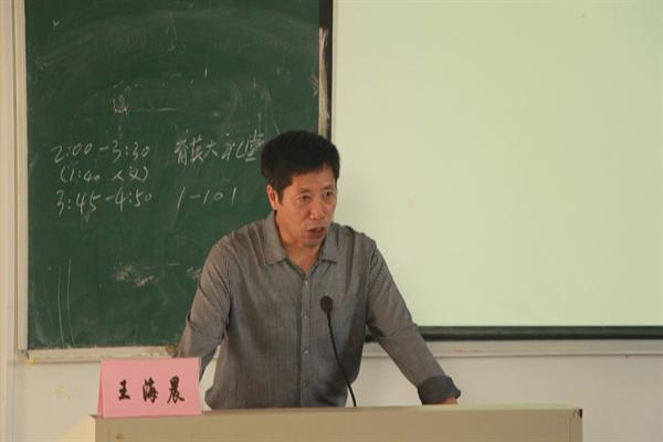 2013年9月17日在1-101教室,我院邀请吴静书记主持,由王海晨教授为2013级新生开展就大学时代应该如何度过的讲座。