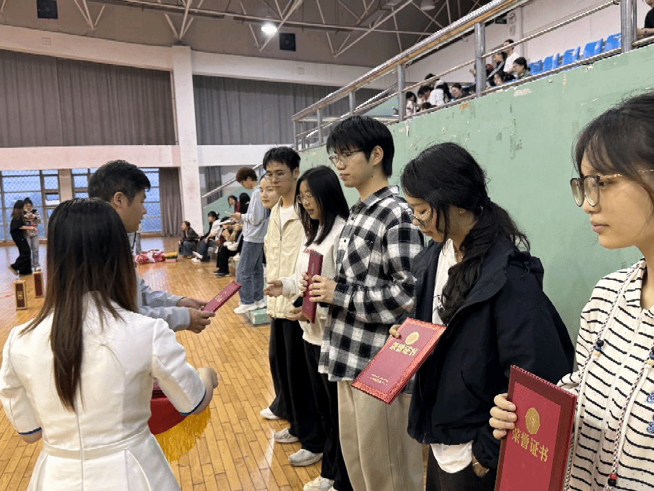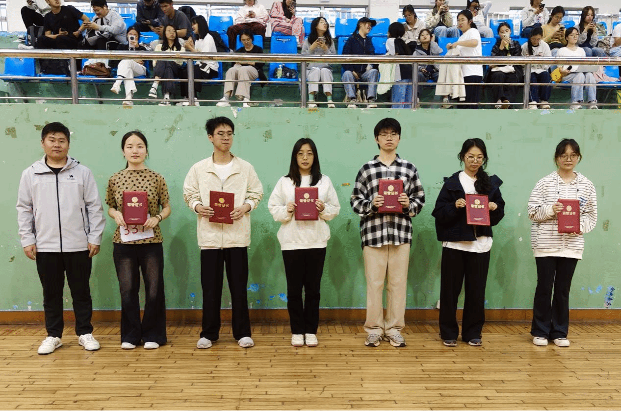 激烈角逐落下帷幕后,激动人心的颁奖环节正式开始。主持人依次宣读各项目获奖班级、团体及个人名单,现场掌声与欢呼声接连不断。学院领导与老师们依次上台,为获奖代表颁发荣誉证书与奖品,奖牌与证书承载着拼搏的汗水,合影定格下荣耀的瞬间。台上笑容灿烂,台下掌声雷动,这份荣誉不仅是对优异表现的肯定,更是对团结奋进、勇于拼搏精神的嘉奖。