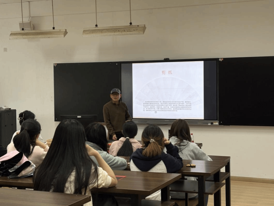 活动中,周老师通过PPT讲解剪纸起源、技法与制作流程,将理论知识通俗化讲解。实操环节,他现场示范、分组指导,耐心答疑纠错,助力同学们顺利创作。