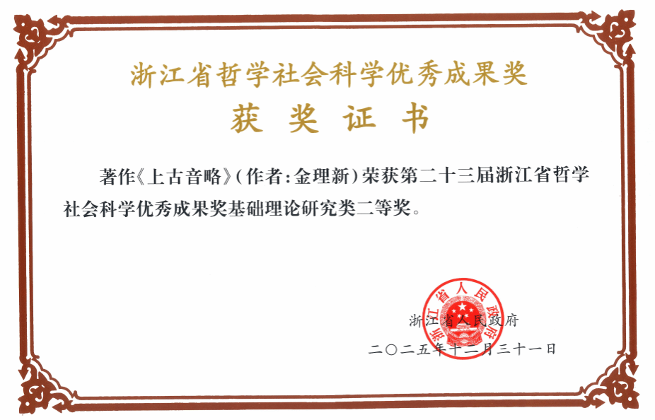 奖励名称:浙江省第二十三届哲学社会科学优秀成果奖