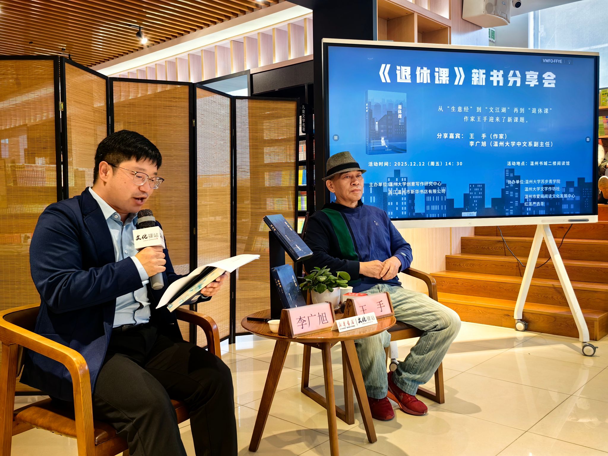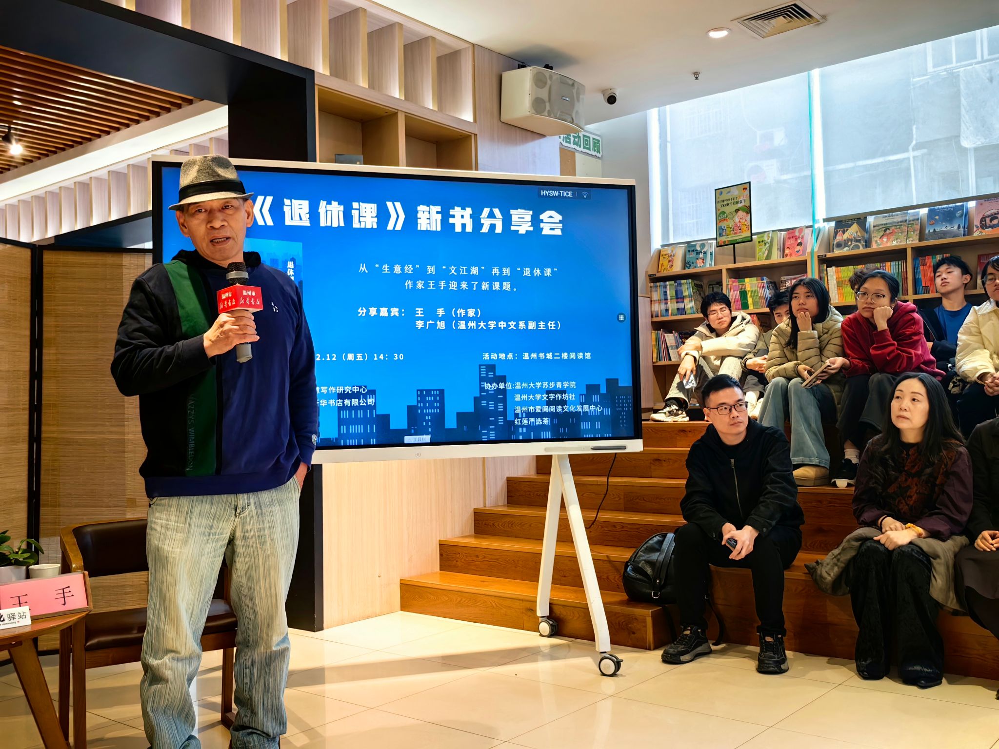 “厚植农情、浸润书香”,12月12日,由402永利集团创意写作研究中心、浙江温州市新华书店有限公司主办,温州市爱阅阅读文化发展中心、红莲严选茶协办的新华大讲堂活动在温州书城二楼文化驿站举行。本次活动聚焦温州本土作家王手新著《退休课》,以文学分享为纽带,串联起城市记忆与生活哲思。
