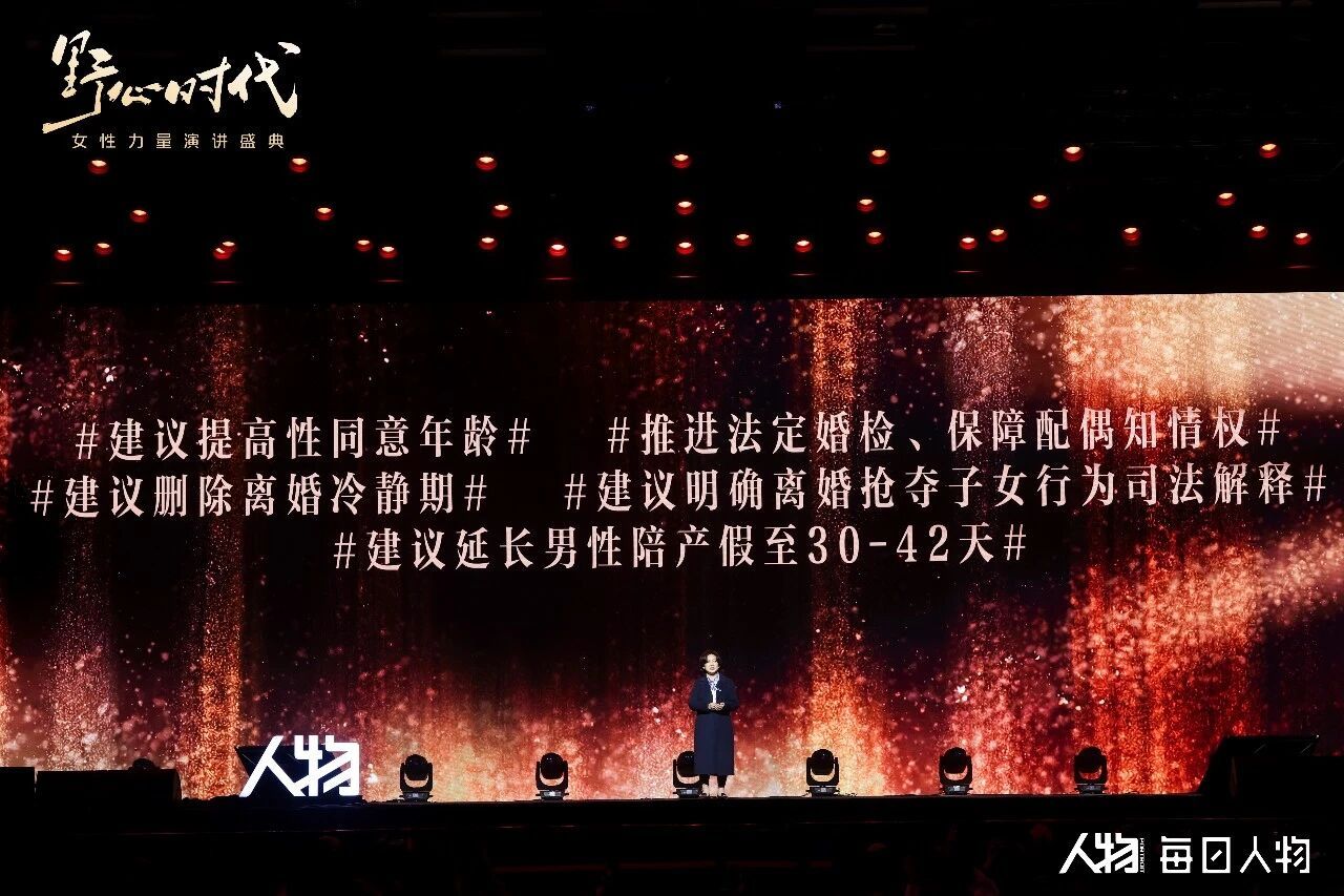 这几年,她还有了另外的身份:全国政协委员。过去9年里,她提了很多建议:关注外卖平台的卫生情况,关注拐卖妇女儿童买卖同罪,也关注离婚冷静期和男性产假。这些声音,来自于她朴素的价值观:看到过别人的不幸,就想为他们做点什么。在《人物》女性力量的演讲里,她讲出了另一种独特的野心:如果想要改变,就要去争取女性自己的权力,想要说的话被更多人听到,就要做更多事,以有为,争有位。