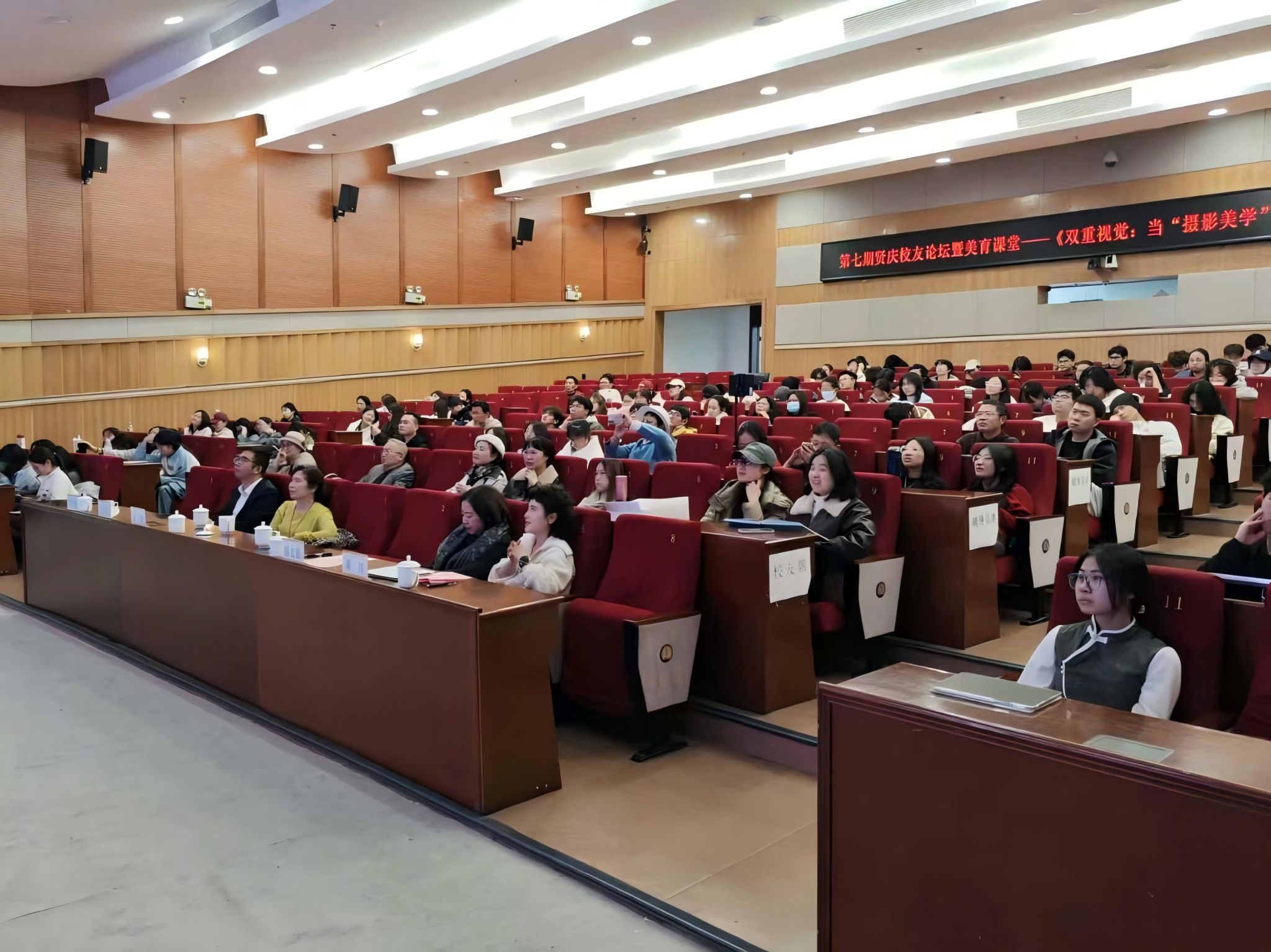 12月17日下午,402永利集团第七期贤庆校友论坛暨美育课堂在402永利集团育英图书馆学术报告厅顺利举行。本次活动以《双重视觉:当“摄影美学”遇见无人机航拍》为主题,邀请中文系1978级校友王俭美、潘平微重返母校,与师生及摄影爱好者展开关于视觉艺术与科技融合的深度对话。