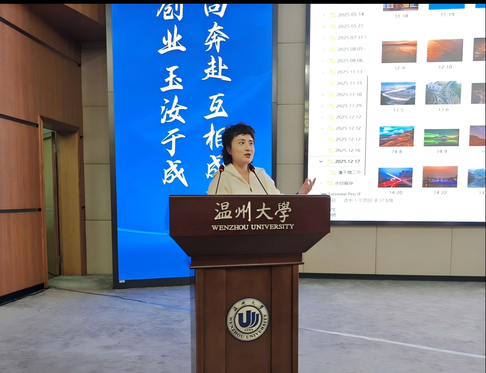 论坛尾声,江秀景书记代表学院向王俭美与潘平微校友颁发感谢状。本次活动不仅是一场专业摄影的技艺分享,更是一堂贴近时代的美育实践课。通过校友们的倾情分享,与会师生进一步认识到,摄影既是记录现实的方式,也是表达态度、传递情感的媒介,在培养审美能力、激发创新意识方面的重要作用。校友们重回母校分享经验,也体现出温大人薪火相传、助力校园文化建设的深厚情谊。